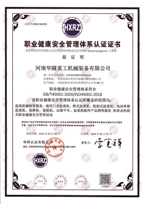 河南華隧重工機械裝備有限公司主要從事通用門式起重機、橋式起重機、電動單梁起重機,輪胎式起重機、架橋機、提梁機、遠梁平車、鋼絲繩電動萌蘆、卷揚機、起重配件制造、銷售:起重機械租賃、安裝和維修,起重設備園收,機械設備維修,鋼結構工程承包,橋梁工程及技術咨淘服務,銷售五金制品、機電設備:建設工程監理,建設工程設計,各類工程建設活動,建筑勞務分包,建筑物折除作業,施工作業,工程管理服務,土石方工程施工,裝如發運?! 」疽淹ㄟ^IS0國際質量、環境、健康與安全三合一標準認證,特種設備制造許可證和特種設備安裝改造維修許可證。擁有完熟的質量管理體系。嚴格的管理制度,強大的生產能力和先進的檢測手段,在保證產品質量的同時,也具備了極強的市場競爭力?! 」緢猿挚萍紕撔聻槔砟?,產品質量為核心,注重信譽,建立了減信可靠、快捷、思速。便利周到的售后服務網絡?! ∥覀儞碛械募夹g專家和技術服務隊伍為客戶提供充善的售前技術支持和全天候的售后服務體系,讓您無后顧之憂,享受一站式的超值服務?!  叭A隧重工,伴您成功“是華隧重工永遠的宗指,真被的希望與各界朋友攜手并進。共創輝準!